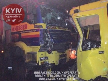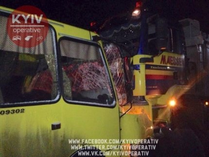 Сообщается, что ДТП произошло в селе Погребы Броварского района. Там маршрутка, ехавшая из Киева столкнулась с грузовиком, который направлялся в город.