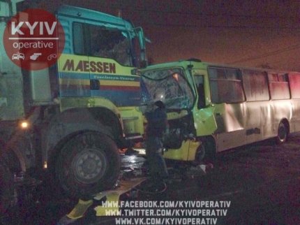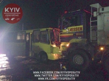 В среду вечером, 4 января, под Киевом произошло крупное дорожно-транспортное происшествие с участием маршрутного автобуса и грузовика.