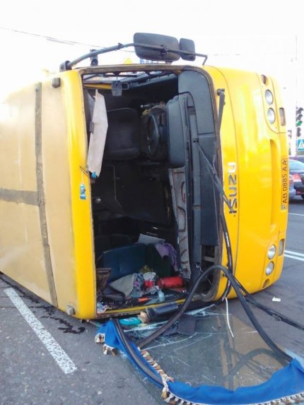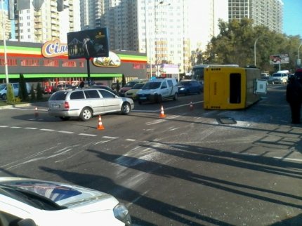 В результате удара маршрутное такси перевернулось на бок, а движение транспорта на некоторое время было заблокировано.