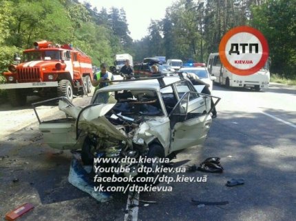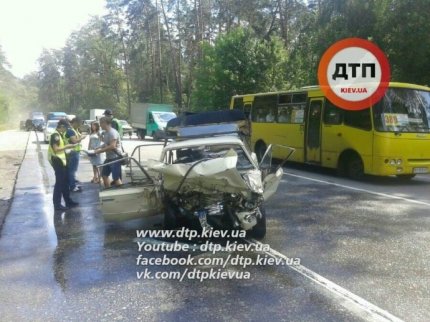 Под Киевом на Гостомельской трассе 4 августа произошло масштабное дорожно-транспортное происшествие, в котором пострадали шесть человек: автомобиль ВАЗ выехал на встречную полосу и протаранил маршрутку.