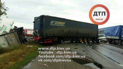 На Бориспольской кольцевой дороге под Киевом произошло масштабное дорожно-транспортное происшествие с грузовыми автомобилями, в результате один из водителей погиб, еще двое госпитализированы.