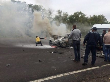 От удара легковой автомобиль загорелся. В результате аварии водитель погиб. Члены футбольной команды отделались легкими ушибами.