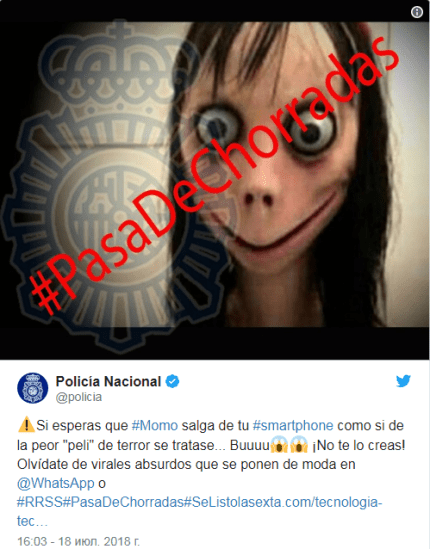 "Эксперты рассказали, что Momo - это вирусный бот, который создали запугивать пользователей мессенджера WhatsApp и популяризировать персонажа. Скульптуру этого существа представили в Японии в 2016 году.
