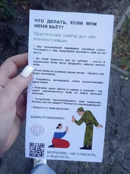 - Новая инструкция для жен российских захватчиков рекомендует скрывать последствия домашнего насилия.