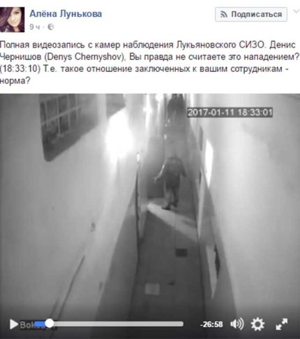 Лунькова написала, что выкладывает полную видеозапись с камер наблюдения Лукьяновского СИЗО. "Вы правда не считаете это нападением?", - обратилась она к представителям власти.