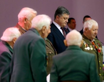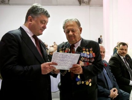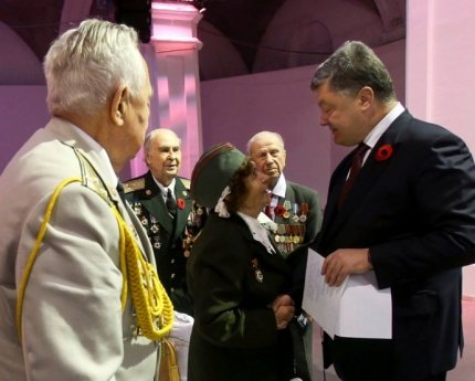 Сегодня за мир борются ваши внуки и правнуки. Это - ваша школа, ваша мощь и дух патриотизма. Вы имеете все основания гордиться своими внуками!", - сказал Порошенко.
