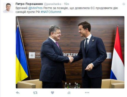 «Убежден, что премьер-министр Нидерландов также будет способствовать ускорению принятия Европейским Союзом решения о введении безвизового режима для украинских граждан», — резюмировал Порошенко.