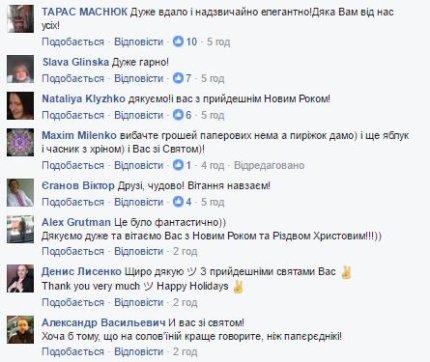 Сотрудники американского посольства записали видеопоздравление, в ходе которого под рождественскую украинскую народную песню "Щедрик" в обработке известного украинского композитора Николая Леонтовича зачитали колядки на украинском языке. При этом, многие были одеты в вышиванки, а некоторым мужчинам в редакторе дорисовали чубы и усы.
