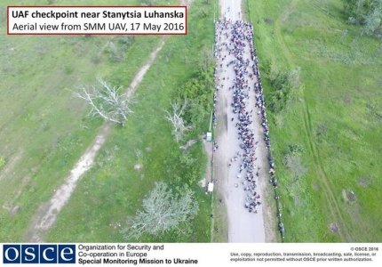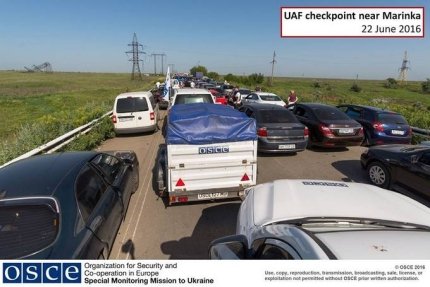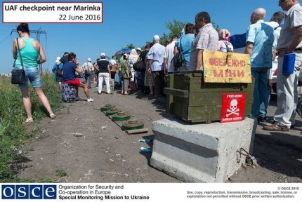 При этом, рядом с людьми, стоящими в очереди на КПВВ "Марьинка" беспилотники мониторинговой миссии ОБСЕ зафиксировали противотанковые мины.