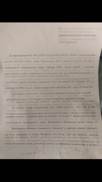 Об этом сообщает "Обозреватель", которому удалось получить результаты врачебного осмотра.
