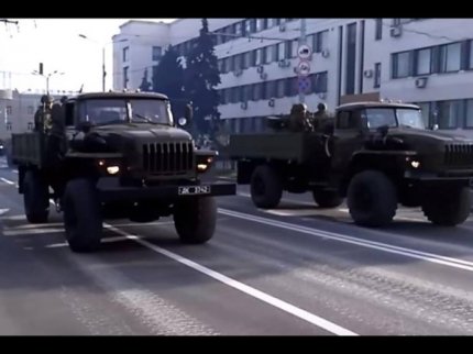 На репетицию парада, который боевики ДНР намерены провести в Донецке 9 мая, вышли новейшие военные грузовики российского производства.