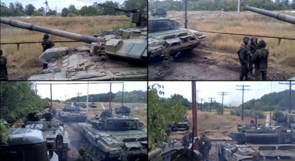 Так, в сети появилось видео, вероятно снятое 25 августа 2014 года. На ролике запечатлены российские танки Т-90А, БМД-2 и техника пророссийских боевиков к югу от населенного пункта Лысое в Краснодонском районе Луганской области.
