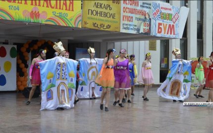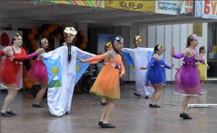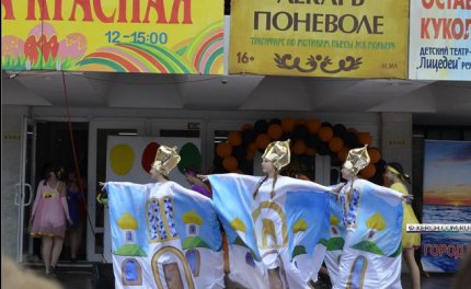 Так, во время народных гуляний перед дворцом культуры "Корабел" выступил танцевальный коллектив в забавных костюмах, на которых были изображены купола церквей.