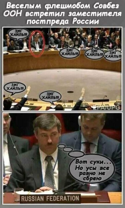 В сети появилась смешная пародия на исполняющего обязанности представителя России при ООН Петра Ильичева, сходство которого с Адольфом Гитлером ранее отметили в соцсетях.