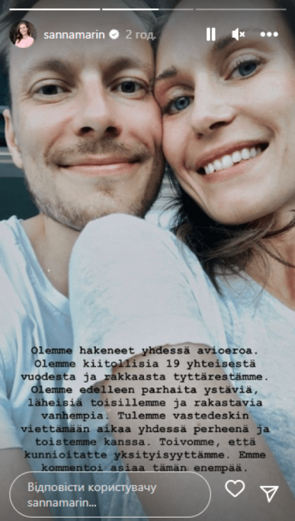Премьер Финляндии Санна Марин и ее муж Маркус Райкконен расстаются после почти двадцати лет отношений.