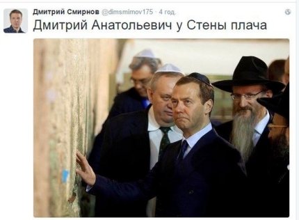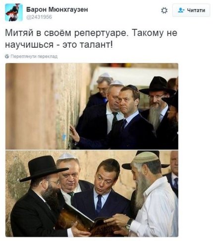 На одном из фото глава российского правительство рассматривает Стену плача, на другом, - рассматривает книгу, при этом на обеих фото у него забавное выражение лица, в связи с чем в соцсетях высмеяли его мимику, назвав её "природным талантом".