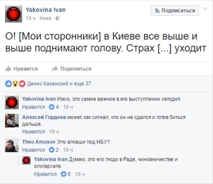 На вопрос одного из комментаторов в соцсети: "Это алкаши под НБУ?", - журналист ответил: "Думаю, это его люди в Раде, чиновничестве и олигархате".