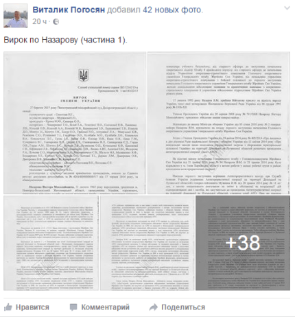 Как сообщал ONLINE.UA, Виктор Назаров был признан виновным в том, что, вопреки донесениям разведки в июне 2014 года отправил в Луганск самолет с десантниками из Днепра, который был сбит боевиками ЛНР.