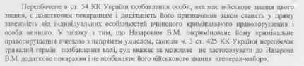 При этом в документе указано, что суд не счел необходимым лишать Назарова воинского звания генерал-майора.