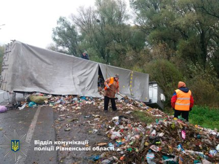 В Ровенской области перевернулся грузовик со львовским мусором.