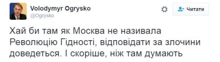 Бывший глава МИД Украины Владимир Огрызко: "Как бы там Москва не называла Революцию Достоинства, отвечать за преступления придется. И скорее, чем там думают".