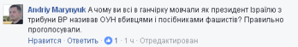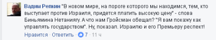 "Давайте спокойно. Сначала государственный интерес Украины, а уже потом все остальное. Если бы не проголосовали резолюцию, дали бы возможность России оправдать оккупацию Крыма. Я полностью поддерживаю Израиль, симпатизирую неистово, но интерес моей Родины на первом месте. Извините друзья", — написал в своем Facebook заместитель донецкого губернатора Игорь Стокоз.