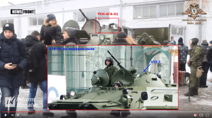 Пророссийские пропагандисты "News-Front" на Донбассе оконфузились, "засветив" на обнародованном ими видео модифицированный российский БТР-80 с прицелом ТКН-4ГА-01, который выпускает Ростовский оптико-механический завод и который никогда не экспортировался в Украину.