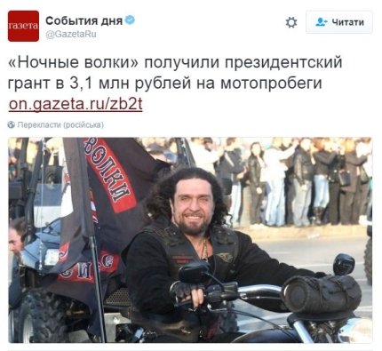 Байкерский клуб "Ночные волки" получил грант президента России Владимира Путина на сумму в 3,1 млн руб.