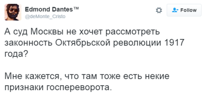 В решении Дорогомиловского суда Москвы, который удовлетворил иск бывшего нардепа Партии регионов Владимира Олейника о признании Революции Достоинства государственным переворотом, нашли интересный момент.