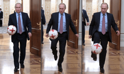 В сети смеются над фотографией, на которой президент России Владимир Путин показывает, как он умеет набивать футбольный мяч.