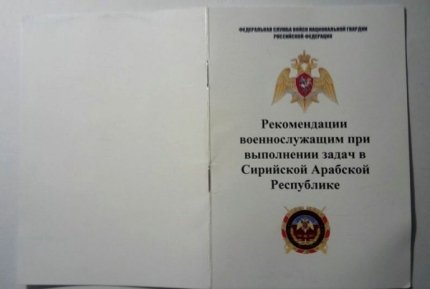 Вторая брошюра представляет собой белую десятистраничную брошюру формата А5 и почти не содержит иллюстраций. Называется она "Рекомендации военнослужащим при выполнении задач в Сирийской Арабской Республике".