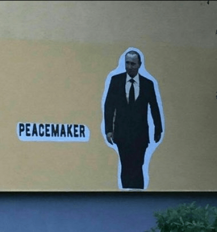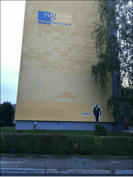 В немецком городе Дрезден, вслед за Нью-Йорком, появилось изображение президента РФ Владимира Путина с надписью Peacemaker («Миротворец»).