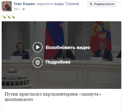 Президент России Владимир Путин насмешил пользователей социальных сетей своим предложением российским парламентариям «махнуть» шампанского.