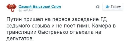 Во время заседания Госдумы все депутаты исполняли гимн России, в то время, как Путин просто опустил вниз глаза. Отметим, что депутатам было легче петь государственный гимн, так, как его слова транслировались на большом экране.