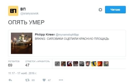 Об этом сообщает ONLINE.UA со ссылкой на Twitter пользователя Philipp Kireev, который обнародовал фото из-под Кремля.