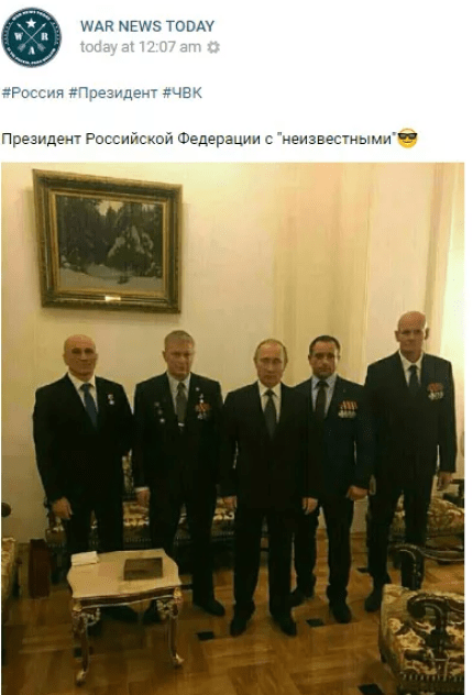 В сети появилось фото, на котором президент России Владимир Путин позирует вместе с известным нацистом Дмитрием Уткиным "Вагнером", воевавшим на Донбассе и в Сирии