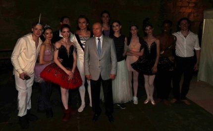 "Президент присутствовал на гала-концерте звезд мирового балета, которые исполнили партии из спектаклей "Корсар", "Жизель", "Лебединое озеро", "Дон Кихот". По окончании концерта Путин кратко пообщался с артистами",- сообщила пресс-служба Кремля.