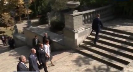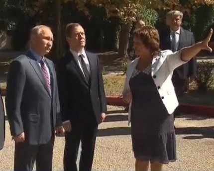 "Путин с Медведевым прошли по Митридатской лестнице: посмотрели раскопки и пообещали найти деньги на создание музея", - также сообщил Смирнов в Twіtter.