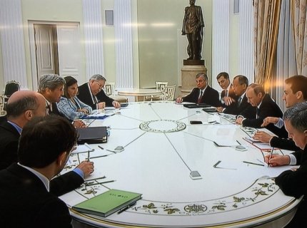 В то же время российский журналист кремлевского пула Дмитрий Смирнов написал в своем Twitter, что на встрече присутствуют в том числе помощник Госсекретаря США Виктория Нуланд и советник президента РФ Владислав Сурков.