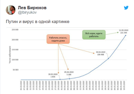 Напомним, в России за последние сутки коронавирусную инфекцию выявили у 11656 человек, а общее число больных там уже превышает 221 тысячу человек. Больше всего число больных растет в Москве, где уже зафиксировано 115909 случаев заражения, в Подмосковье, а Санкт-Петербурге, в Нижегородской и Смоленской областях.