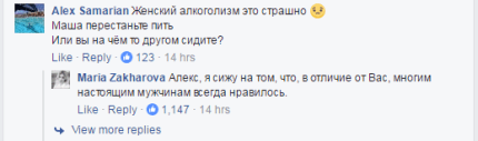 «Маша. Перестаньте пить. Или вы на чем-то другом сидите?», - написали Захаровой в соцсети.