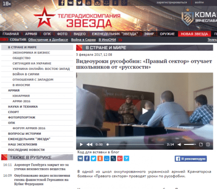 Так, пропагандисты опубликовали ролик, который якобы был снят скрытой камерой на телефоне одного из учеников во время "урока патриотизма" в Краматорске.