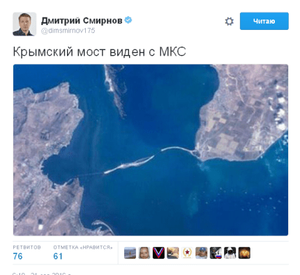 «Крымский мост виден с МКС (Международной космической станции – Ред.)», — написал он.