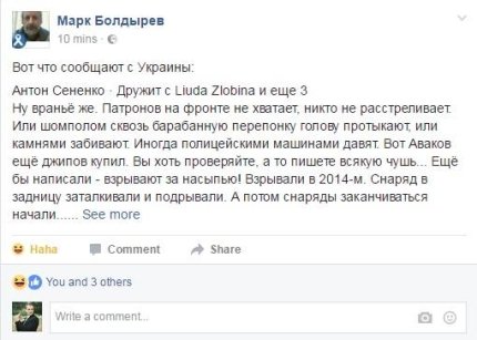 "Естественно, я не мог пройти мимо и рассказал ему правду. Товарищ на полном серьёзе принимает эту информацию за чистую монету, и постит, как последние новости из Украины. Как видно, критического мышления у тамошнего населения не осталось вовсе", — добавил блогер.