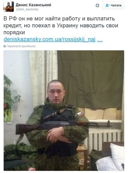 "Жалкий лузер, не способный найти работу и наладить собственную жизнь у себя на родине, приезжал в Украину подзаработать на убийстве украинских граждан, а теперь просится наемником в Сирию, - прокомментировал журналист. - Вот такие люди учат нас, как нам жить. Весь шлак из соседнего государства приехал в Украину наводить свои ублюдочные порядки. Он не может выплатить кредит, но точно знает, как помочь Донбассу".