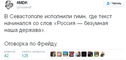 А Игорь Дубровин написал. «Вообще "священная" стремное такое прилагательное — тут деда Сержа (Сергей Михалков – автор стихов к гимну РФ – Ред.) подкосячил..."безумная" — это еще как-то лайт — можно позлее поменять — будет тоже актуально..».