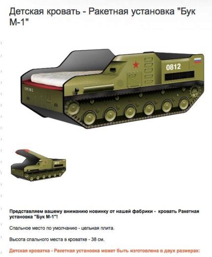 В России в продаже появилась детская кровать в форме ракетной установки "Бук".