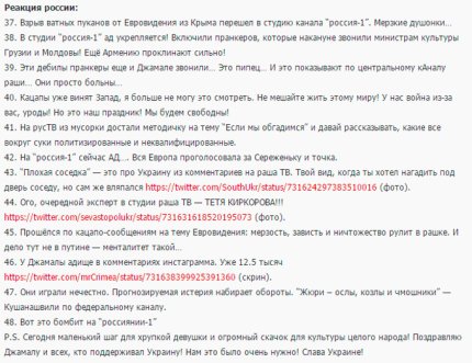 А известный блогер "КРЫМский бандеровец" собрал самую яркую реакцию России на победу Джамалы.