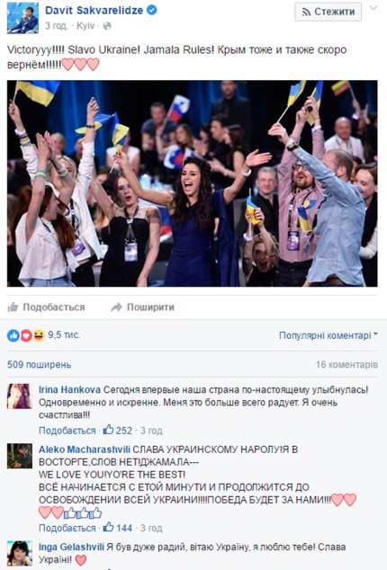 Соцсети бурно отреагировали на победу украинской певицы Джамалы на Евровидении-2016.