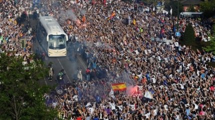 21:04. тысячи болельщиков встречали автобус "Реала" возле стадиона (фото - uefa.com)